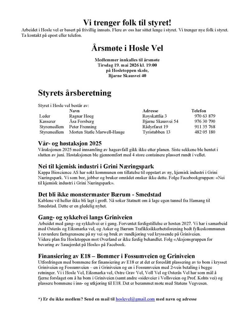 Årsmøte Hosle vel 2026